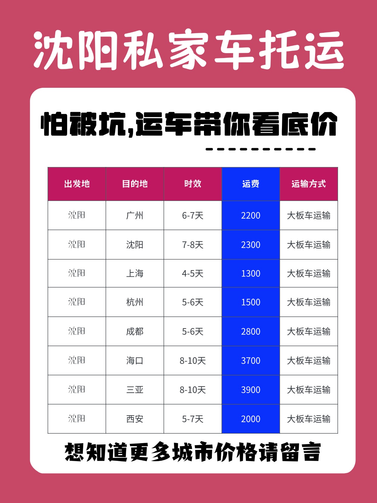 沈阳车主看过来!私家车托运怕被坑?这份底价表直接抄作业!跨速物流运车来帮忙